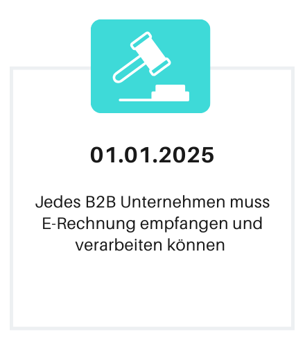 • Ab 01.01.2025: E-Rechnungspflicht für alle B2B-Unternehmen in Deutschland.