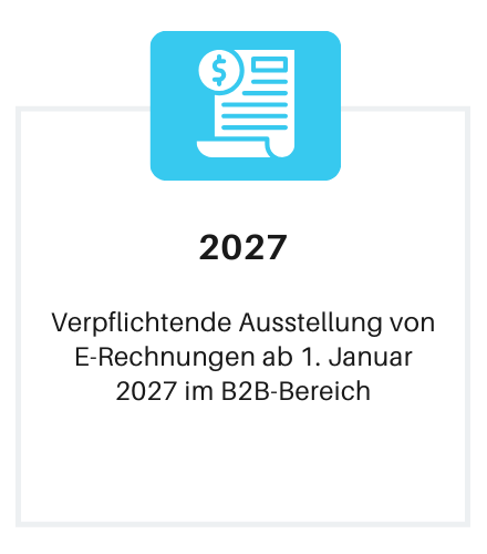 • Endgültig ab 2028: Volle Umsetzung der E-Rechnungsanforderungen.