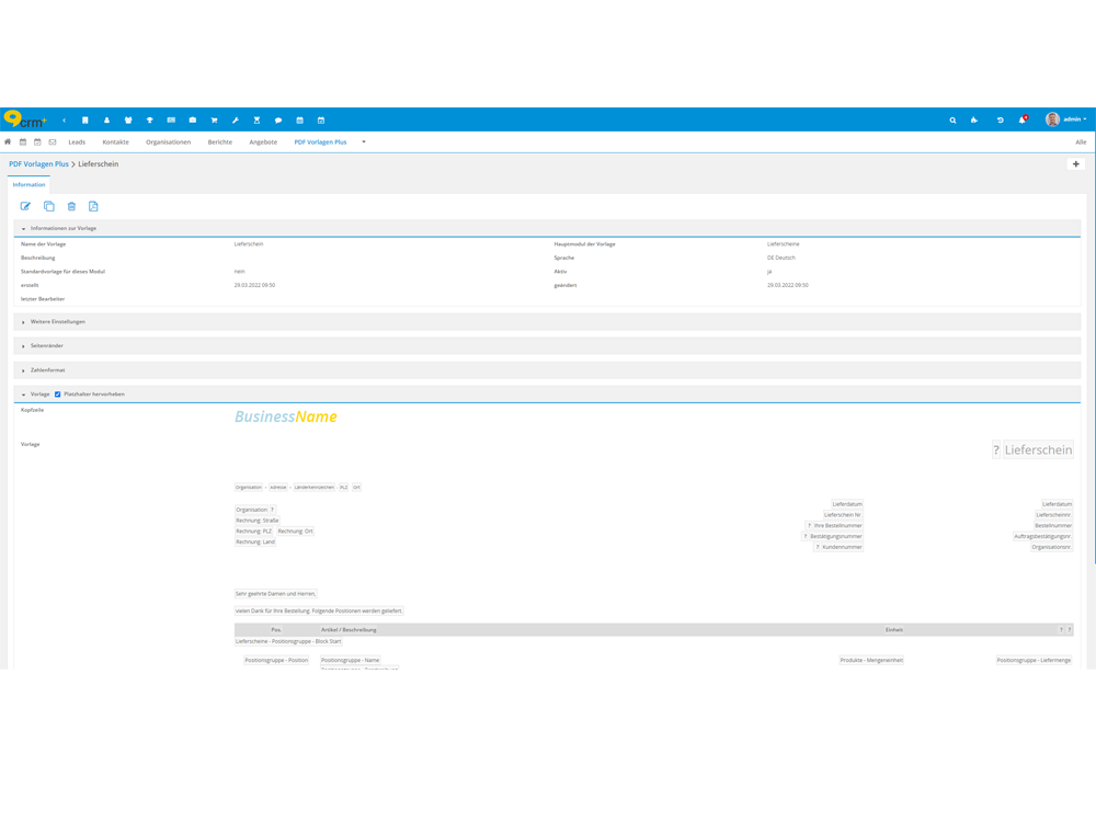 Vorlagen mit relevanten Daten in Ihrem Design aus CRM+