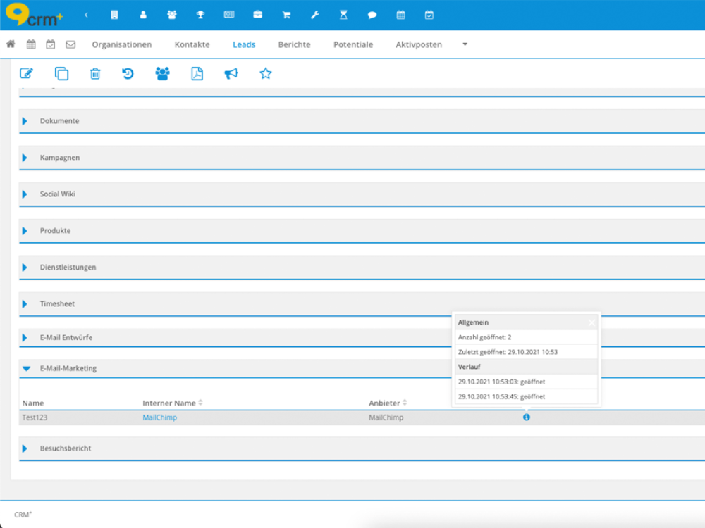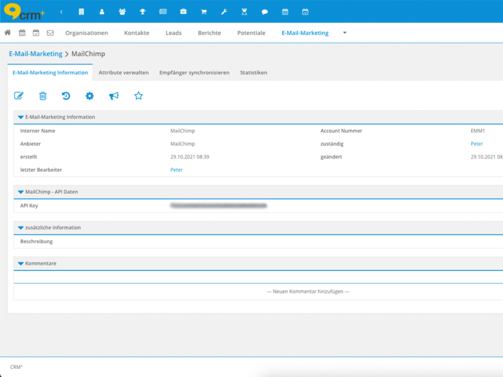 Mit CRM+ können Sie die aufbereiteten Adressdaten der Empfänger zielgerichtet und automatisiert an Mailchimp übertragen – ohne lästiges Abtippen! Statistische Daten zu Ihren Mailings werden auch im CRM gespeichert und können ohne Probleme für weiterführende Kampagnen genutzt werden.