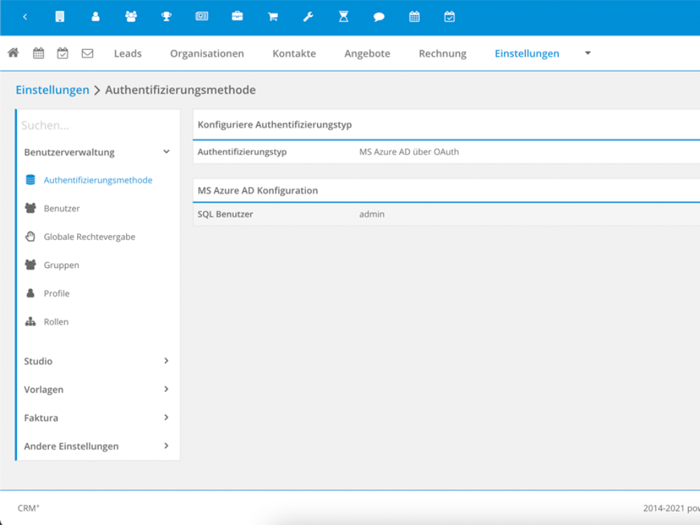 Mit Microsoft Azure AD und CRM+ sichern Sie Ihre gesammelten Daten zusätzlich ab. Durch die Nutzung des Application Token muss kein Passwort mehr in der Datenbank gespeichert werden. Die Benutzer und Passwortrichtlinien von CRM+ können zentral in Azure verwaltet werden. Mit der im Hintergrund aktiven Microsoft Anmeldung wird der Login so bequem wie bei Single Sign-On.